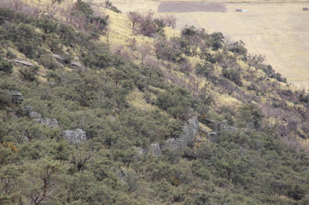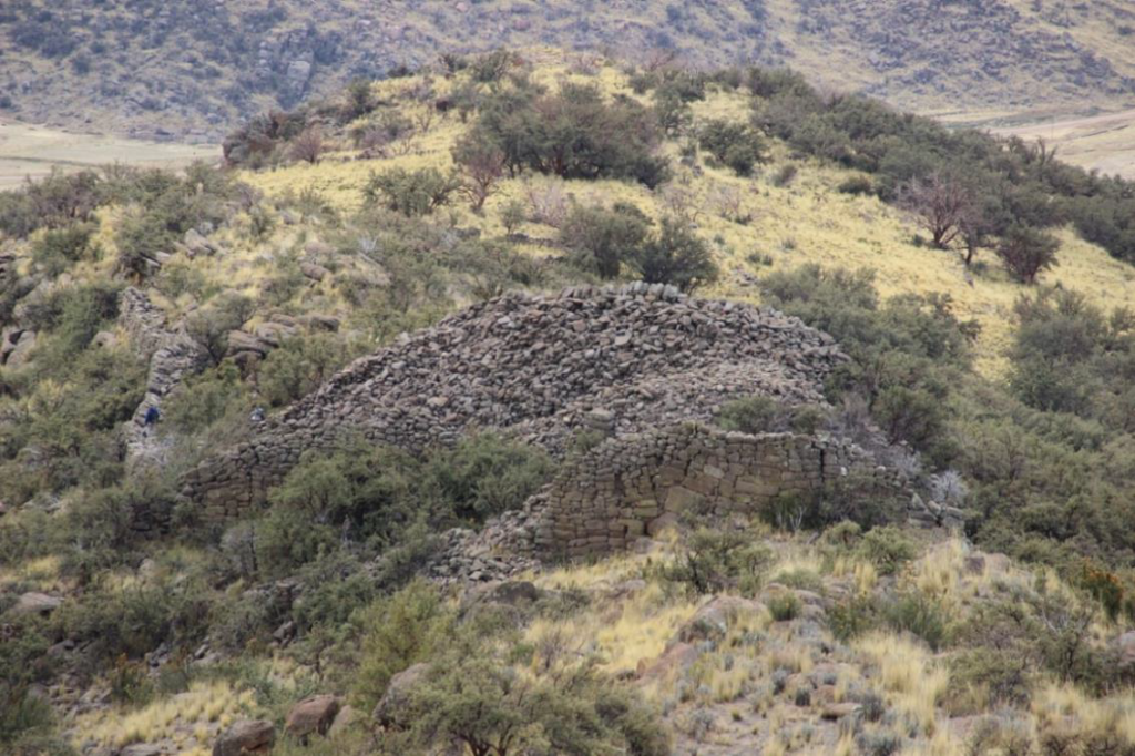 Desde este punto surgen dos nuevas líneas defensivas de menor envergadura, que se extienden por aproximadamente dos kilómetros hacia el oeste, cerrando el sistema defensivo del cerro. Sumando todas las murallas, el sistema defensivo alcanza aproximadamente 4 km lineales. En algunos sectores aparece doble muro defensivo (Figura 3) con accesos estratégicamente ubicados que permitían cerrar el paso al enemigo entre murallas.
